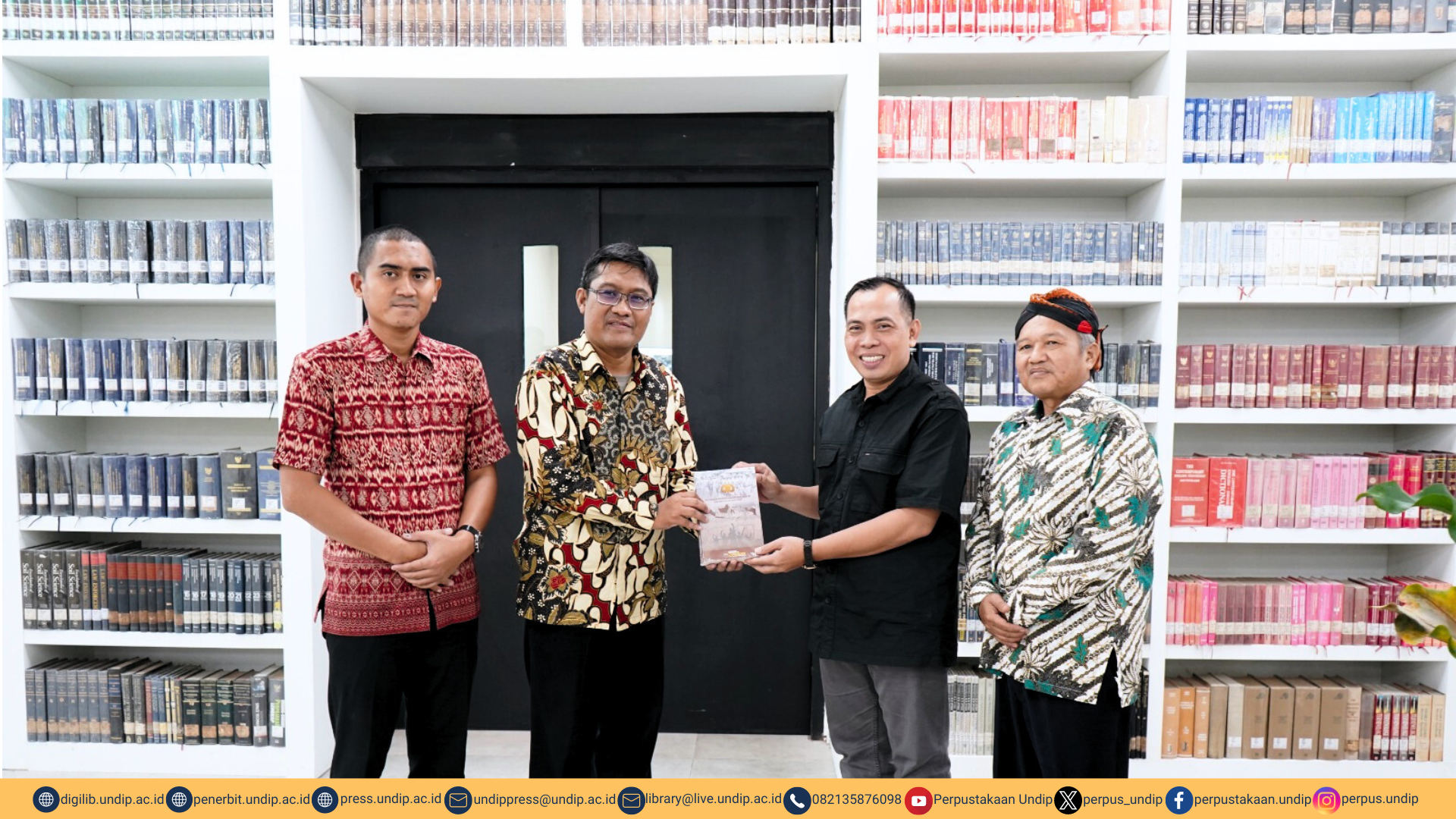 Kamis, 14 Maret 2024 Kepala UPT Perpustakaan dan Undip Press Suwondo, S.Hum., M.Kom. menerima kunjungan dari Mabes POLRI. Kegiatan ini dilaksanakan dalam rangka penelusuran dan penelitian pemberontakan Jawa Tengah sebagai bahan referensi penyusunan buku “Sejarah perkembangan POLRI era parlementer 1950-1959”. Menjadi sumber rujukan dan informasi merupakan tugas utama perpustakaan. Koleksi perpustakaan dapat menjadi sumber acuan atau petunjuk yang menggambarkan informasi tertentu. Secara tidak langsung, koleksi perpustakaan dapat memberikan bimbingan kepada penggunanya dalam menyusun buku maupun karya ilmiah. Dalam penentuan sumber rujukan di perpustakaan, diperlukan pustakawan. Pustakawan yang membantu dalam penelusuran sumber rujukan perlu memiliki keterampilan dalam mencari sumber informasi, berwawasan luas, serta mampu mengoperasikan teknologi informasi. Setelah kegiatan penelusuran sumber rujukan, kegiatan kunjungan ini ditutup dengan library tour.