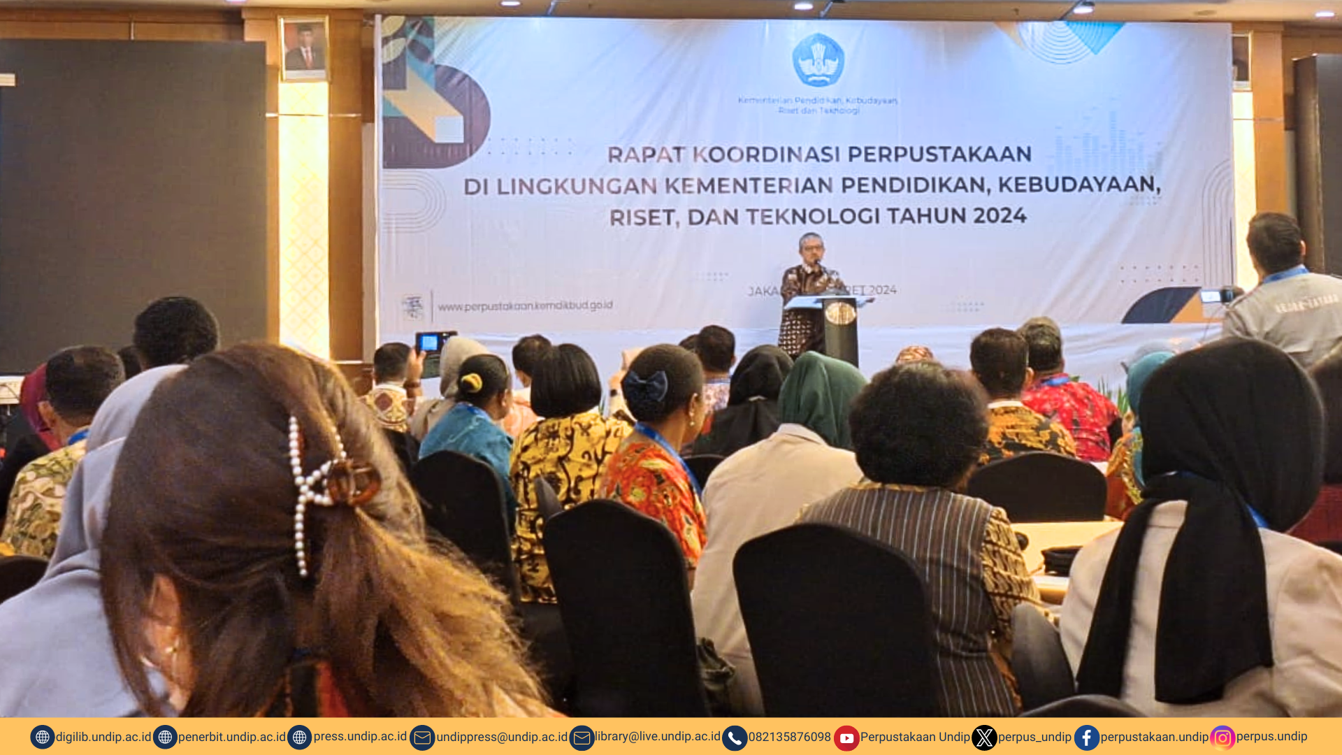 Kepala UPT Perpustakaan dan Undip Press Suwondo, S.Hum., M.Kom. menghadiri Rapat Koordinasi Perpustakaan di Lingkungan Kementerian Pendidikan, Kebudayaan, Riset, dan Teknologi. Kegiatan ini dilaksanakan pada hari Senin tanggal 25 Maret 2024 di ballroom Hotel Grand Sahid Jaya, Kota Jakarta. Peserta yang hadir sejumlah 191 dari berbagai daerah di Indonesia. Sekretariat Jenderal melalui Biro Kerjasama dan Hubungan Masyarakat (BKHM) memiliki tugas fungsi melaksanakan pembinaan perpustakaan di lingkungan Kementerian. Dalam rangka menjalankan penguatan tata kelola perpustakaan di lingkungan Kemendikbudristek, Sekretariat Jenderal melalui Biro Kerjasama dan Hubungan Masyarakat (BKHM) menyelenggarakan Rapat Koordinasi Pengelolaan Perpustakaan di Lingkungan Kemendikbudristek Tahun 2024.