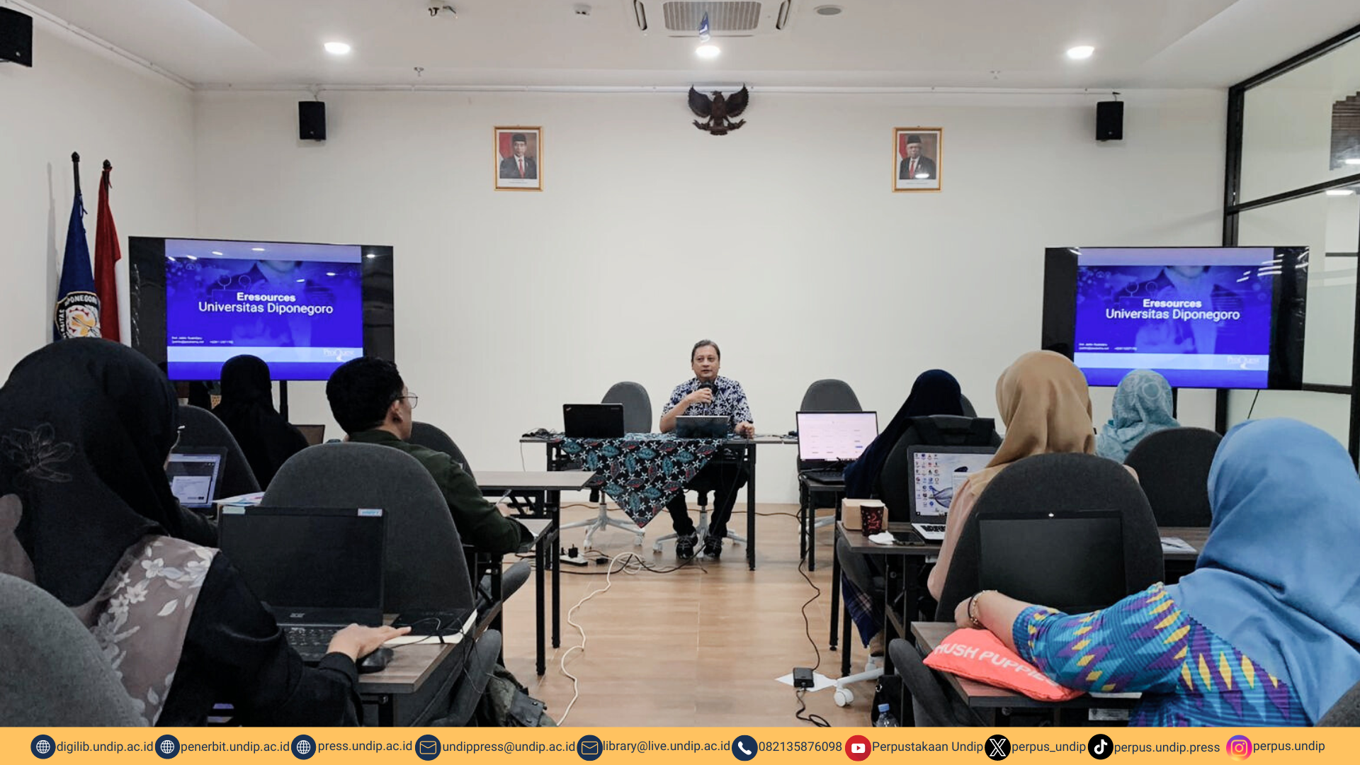 Kepala UPT Perpustakaan dan Undip Press Suwondo, S.Hum., M.Kom. memberikan sambutan sekaligus membuka kegiatan pelatihan. ‘Kegiatan ini dilaksanakan untuk memfasilitasi Sivitas Akademika agar dapat memanfaatkan Database Proquest, JStore, dan Abi. Selain itu, UPT Perpustakaan dan Undip Press memiliki banyak kegiatan yang sudah terjadwal. Bulan Mei dan Juni sudah kita tampilkan pada banner di depan pintu masuk perpustakaan.’ ungkap Bp Suwondo.