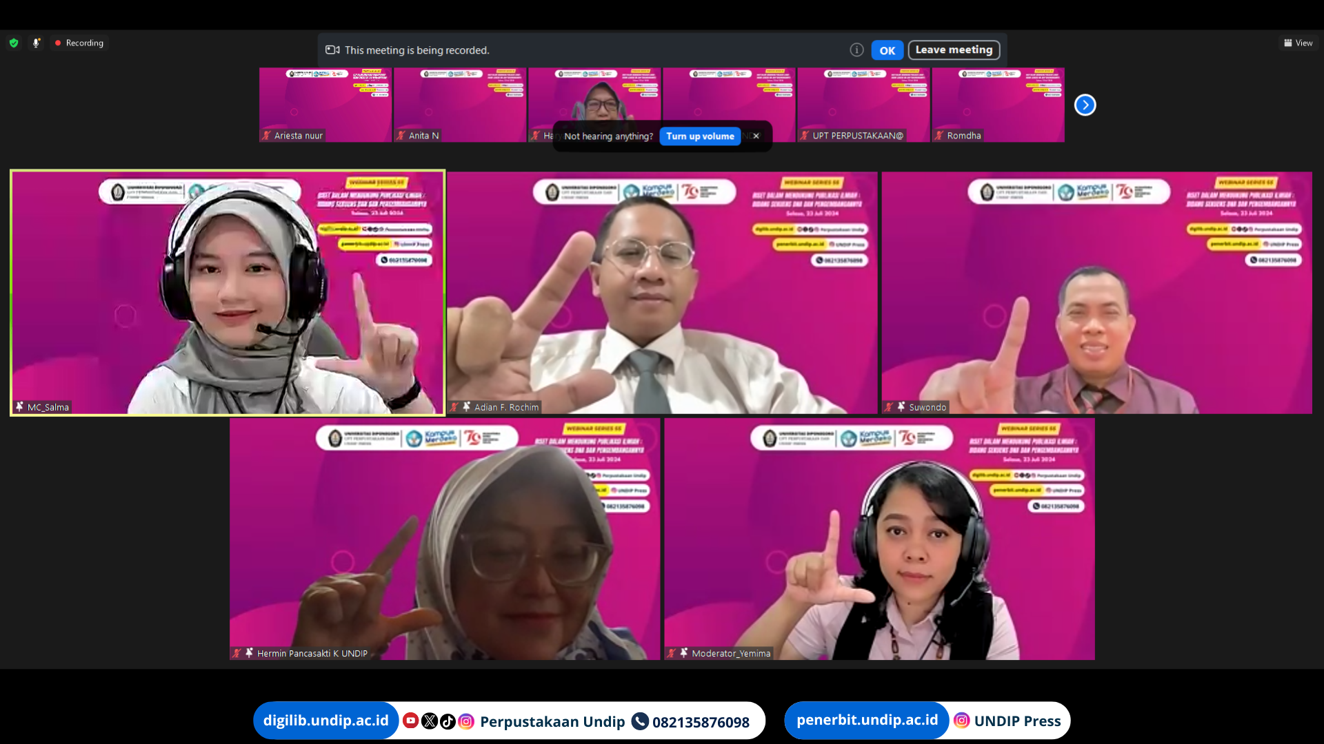 Selasa, 23 Juli 2024 UPT Perpustakaan dan Undip Press melaksanakan webinar ke 55 dengan tema Riset dalam Mendukung Publikasi Ilmiah: Bidang Sekuens DNA dan Pengembangannya. Kegiatan ini dilaksanakan atas kerja sama UPT Perpustakaan dan Undip Press dengan Forum Komunikasi Pustakawan dan Pengelola Perpustakaan Universitas Diponegoro.