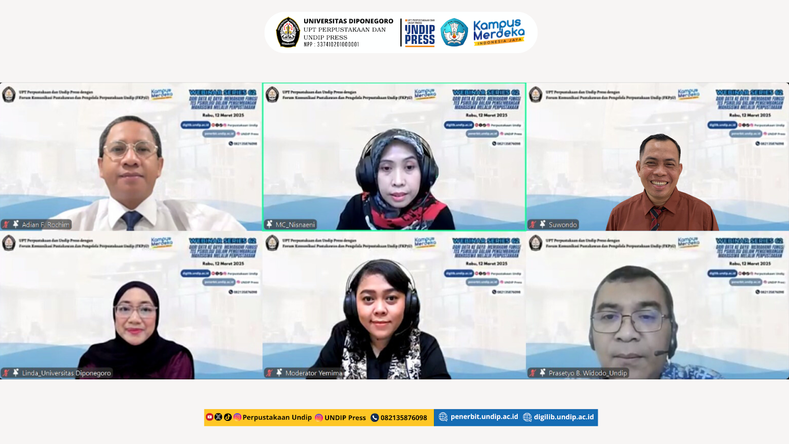 UNDIP, Semarang (12/3) – UPT Perpustakaan dan UNDIP Press menggelar Webinar 62 dengan tema “Dari Data ke Daya: Memahami Fungsi Tes Psikologi dalam Pengembangan Mahasiswa Melalui Perpustakaan”, Rabu (12/3).
