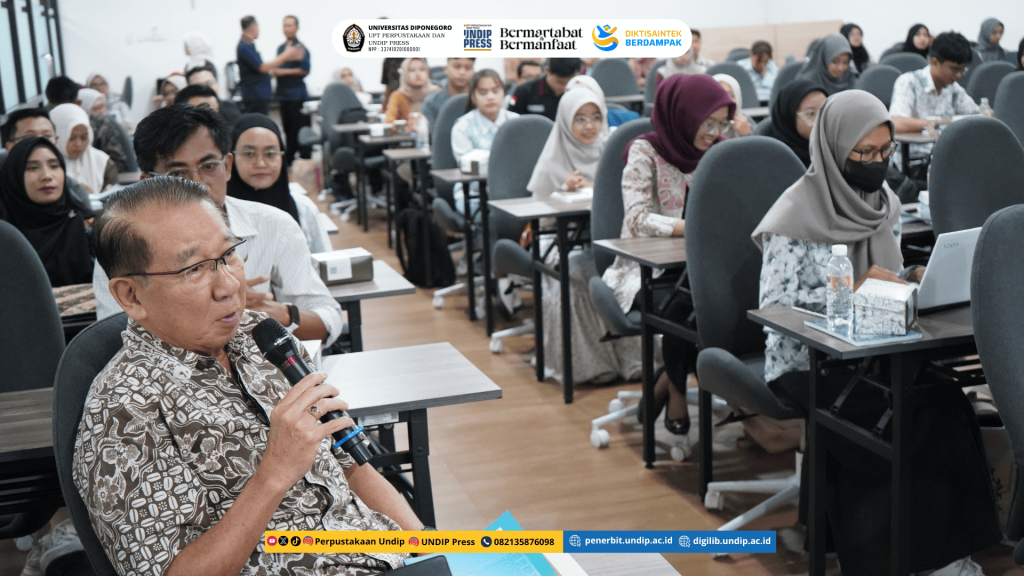 Wakil Rektor Sumber Daya Manusia, Teknologi Informasi, Hukum dan Organisasi Universitas Diponegoro, Prof. Dr. Adian Fatchur Rochim, S.T., M.T.. dalam sambutannya, menyampaikan pentingnya bagi para akademisi untuk terus aktif menulis dan mempublikasikan hasil pemikiran serta penelitian mereka sebagai bentuk kontribusi nyata terhadap ilmu pengetahuan.