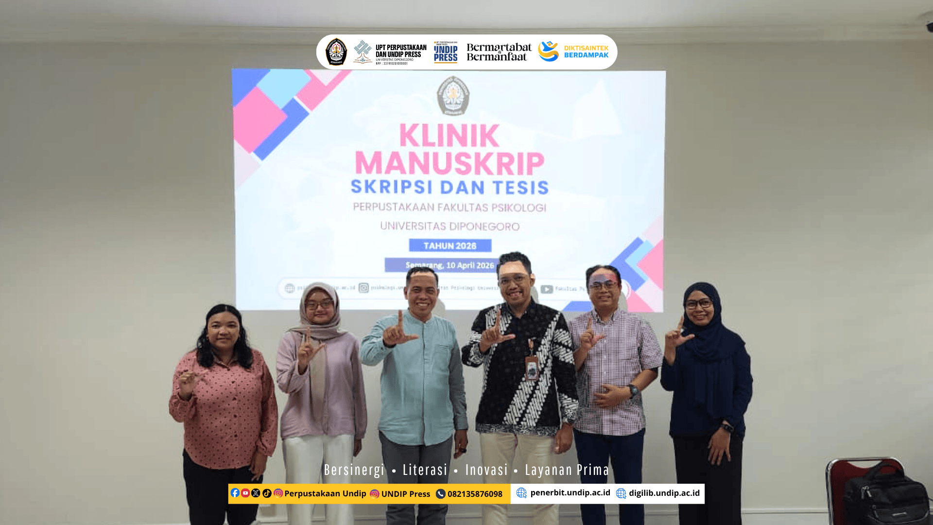 UNDIP, Semarang (10/4) – UPT Perpustakaan dan UNDIP Press bekerja sama dengan Fakultas Psikologi melalui Smart Literacy Collaboration dengan tema Peran Artificial Intelligence (AI) dalam Riset, Jumat (10/4).