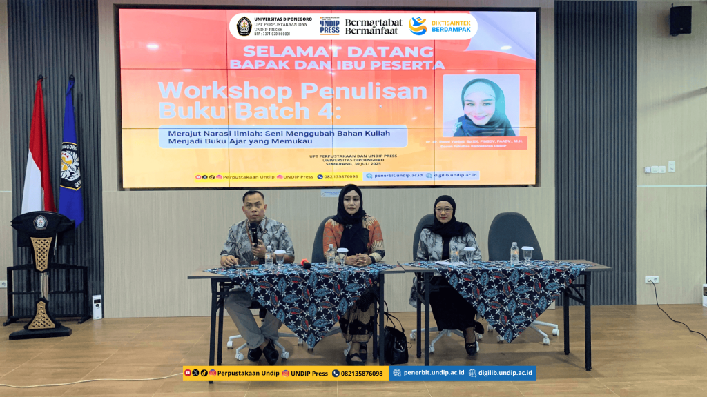 UNDIP (30/7) – UPT Perpustakaan dan UNDIP Press menyelenggarakan Workshop Penulisan Buku Batch 4 bertajuk “Merajut Narasi Ilmiah: Seni Menggubah Bahan Kuliah Menjadi Buku Ajar yang Memukau.” Rabu (30/7) di Ruang Pertemuan Lantai 4, UPT Perpustakaan dan UNDIP Press, Universitas Diponegoro. Workshop Penulisan Buku Batch 4 dirancang khusus untuk dosen, dosen kolaborasi dengan tenaga kependidikan […]