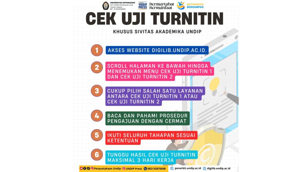 UNDIP, Semarang (8/1) — Di tengah kesibukan menyelesaikan tugas, artikel, hingga skripsi, satu hal yang sering menimbulkan kecemasan mahasiswa adalah “Aman nggak ya dari plagiarisme?”. Untuk memberikan rasa tenang dan keyakinan sivitas akademika, UPT Perpustakaan dan UNDIP Press menyediakan layanan Cek Uji Turnitin. Layanan ini dirancang untuk membantu mahasiswa, dosen dan staf pendidikan dalam memastikan bahwa […]